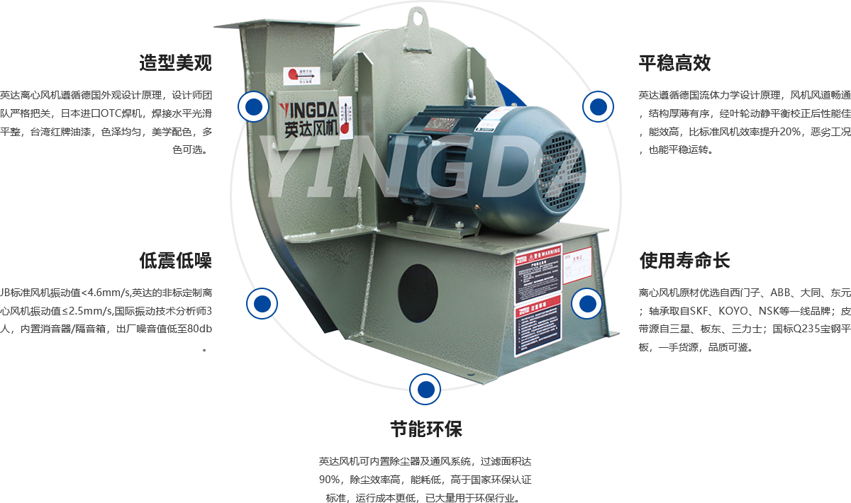 風機可廣泛應用于環(huán)保行業(yè),通風送風,粉塵送排風行業(yè),工業(yè)爐行業(yè)等。