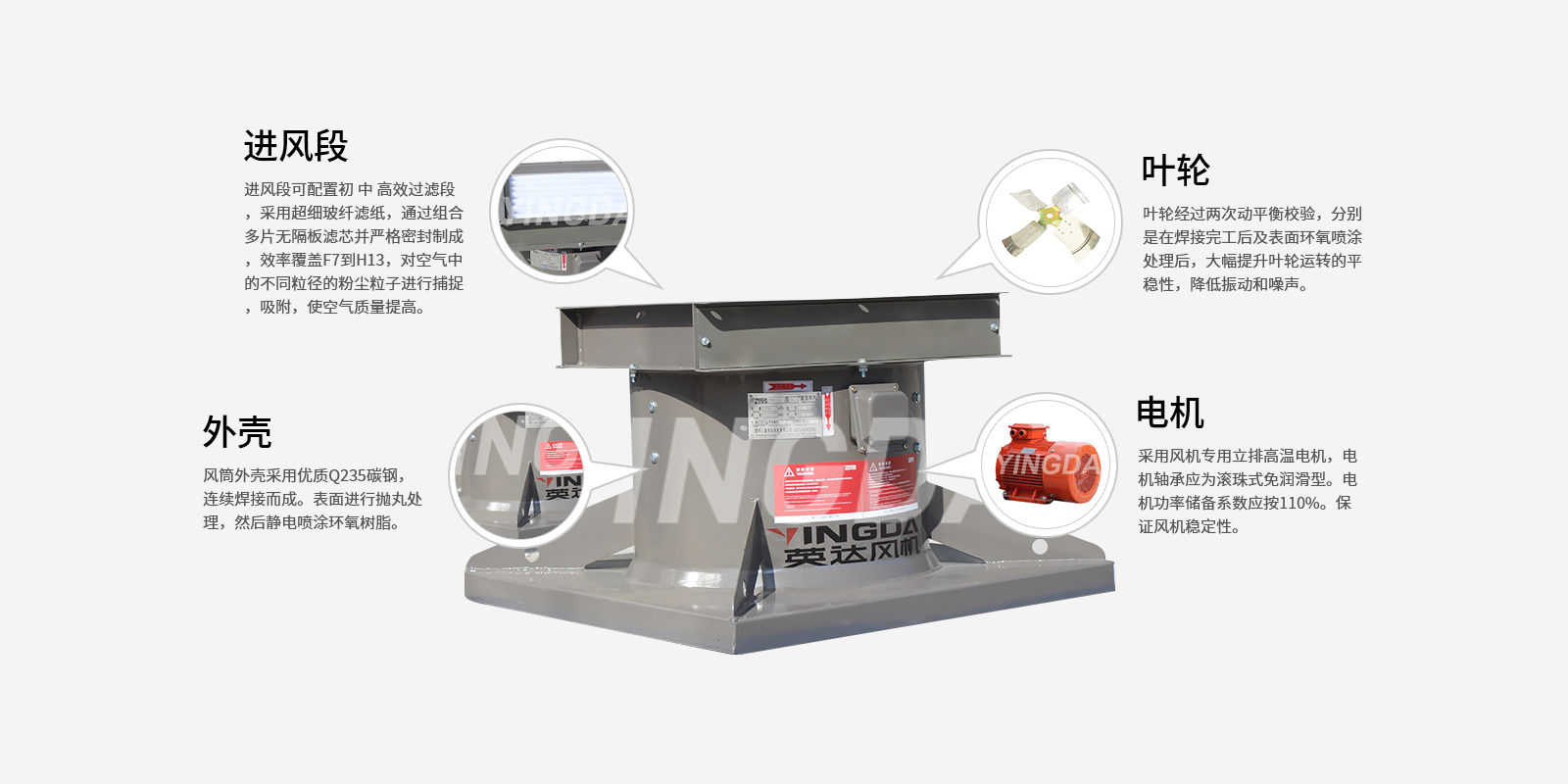 為了適應(yīng)空氣凈化需要,風(fēng)機可做成高效凈化型,根據(jù)要求要求做初效過濾, 中效過濾,高效過濾,及活性炭過濾。