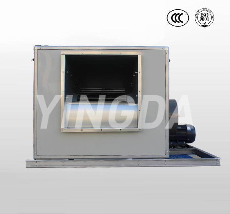 1.1.HTFC型柜式離心風(fēng)機(jī)是一種高效率、低噪聲箱式離心風(fēng)機(jī)。產(chǎn)品由低噪聲前傾多翼離心風(fēng)機(jī)、電機(jī)、軸承、傳動(dòng)件、消聲型箱體等組成。根據(jù)安裝位置的不同,提供12種不同的角度的進(jìn)出風(fēng)口位置,以滿足用戶不同的安裝需要。根據(jù)消防與通風(fēng)的不同要求分A式和B式兩種類(lèi)型,A式電機(jī)裝在箱體外,用于消防排煙,并經(jīng)國(guó)家消防裝備監(jiān)督質(zhì)量檢驗(yàn)中心按GA211-2009《消防排煙風(fēng)機(jī)耐高溫試驗(yàn)方法》進(jìn)行耐高溫試驗(yàn),能在280℃高溫條件下連續(xù)運(yùn)行30分鐘以上;B式電機(jī)裝在箱體內(nèi),用于通風(fēng)換氣。