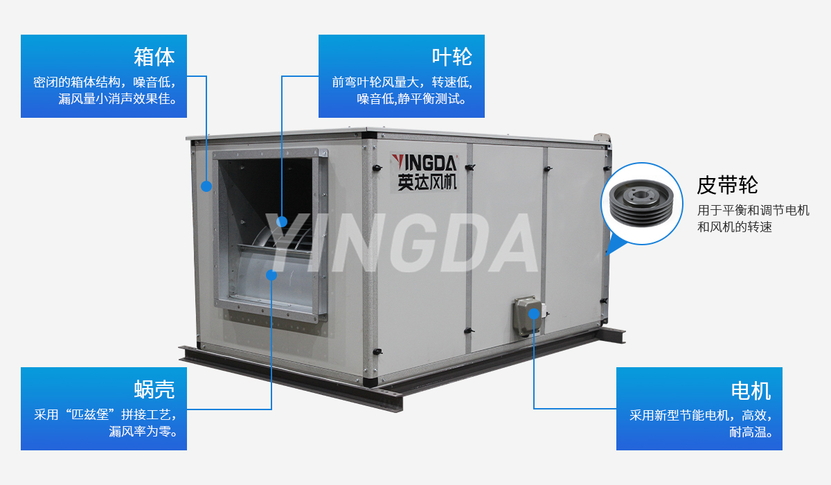 英達風機蝸殼采用流線型雙進風結(jié)構,“匹茲堡”拼接工藝,漏風率為零;雙側(cè)板一次成型,精度高,減小裝配后尺寸誤差;葉片一次沖壓 成型,專門夾具確保葉片安裝精確定位。